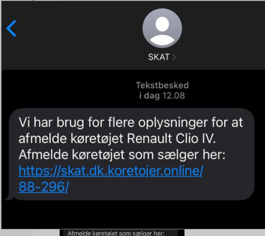 Wenn Sie nicht genau wissen, ob die SMS von der Steuerverwaltung stammt, sollten Sie keine Links in der SMS anklicken. Stattdessen können Sie Ihren Browser öffnen, auf skat.dk gehen und die gewünschte Seite von dort aufrufen. Auf skat.dk können Sie Kontakt mit der Steuerverwaltung aufnehmen und Ihre Steuerdaten einsehen.