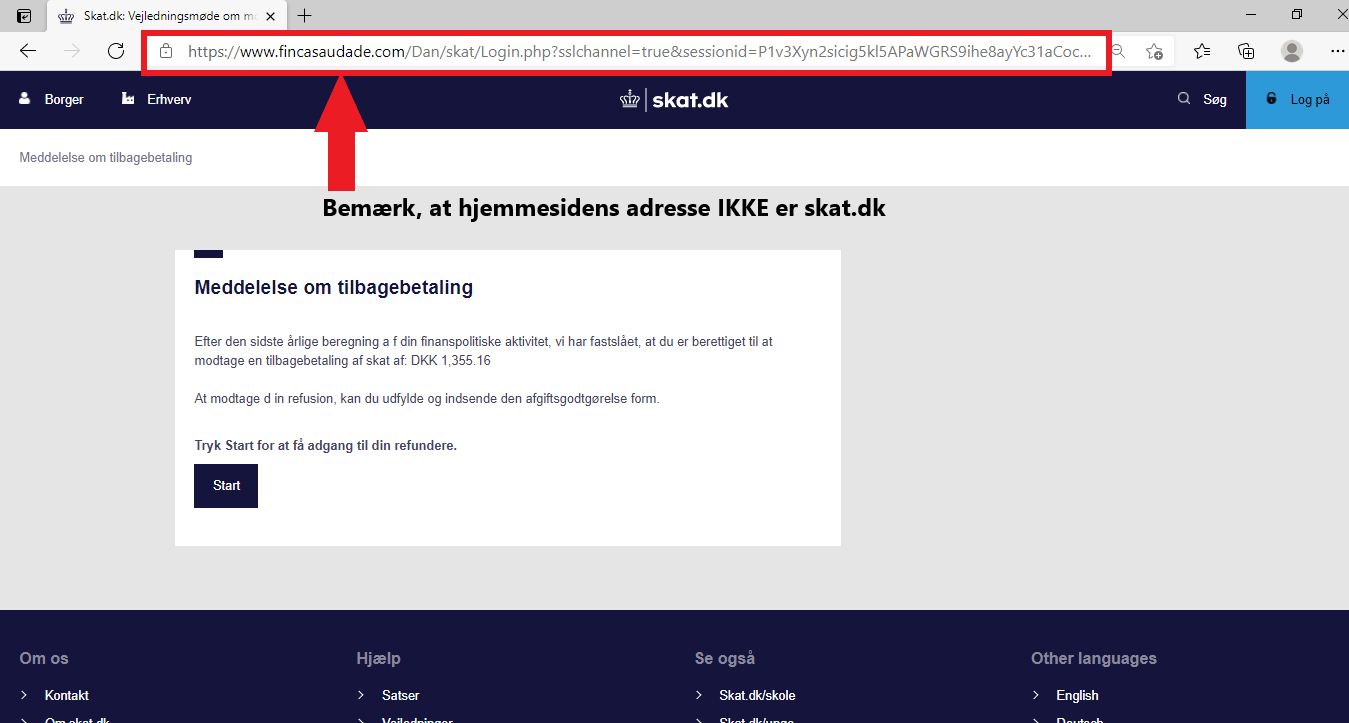 However, you can never be completely sure as the sender email address can easily be faked and therefore look like an official address from the Danish Customs and Tax Administration.