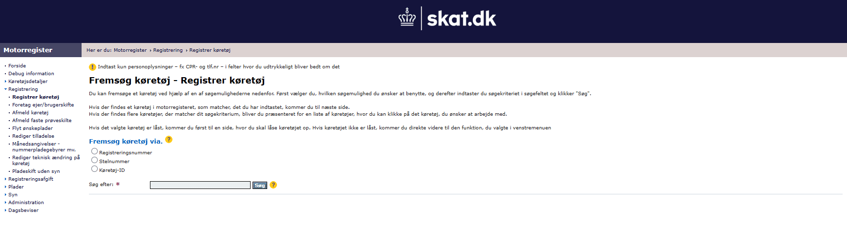 Du tilgår Motorregistret på: motorregister.skat.dk