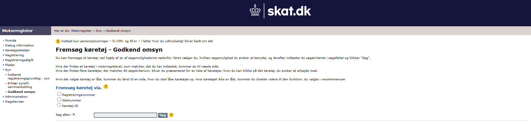 Et registreringssyn foretages i Motorregistret ved at klikke på ”Syn” →