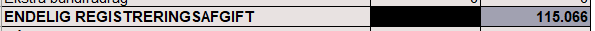I det grå felt i bunden af beregningsskemaet kan du se den endelige registreringsafgift.
