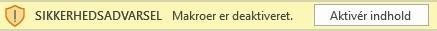 Hvis du modtager en sikkerhedsadvarsel, når du åbner et skema, skal du klikke på ”Aktivér indhold”, før du kan bruge skemaet.